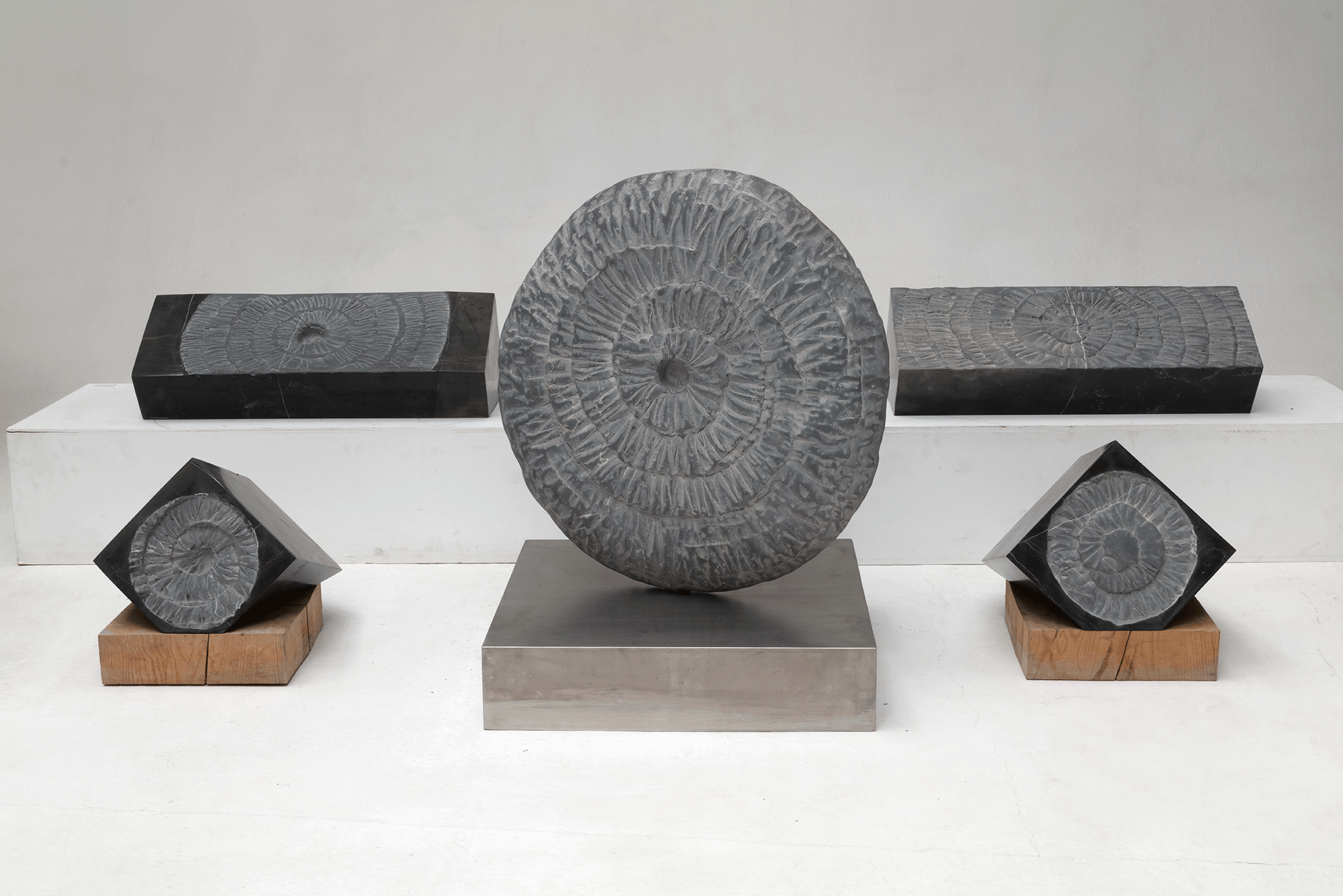 -1- ROSA BLANCA, 2005 Carrara Pi white marble 65 Ø -2- “HERMES”, 1998 Macael white marble 133 cm AFRODITA, 1998 Macael white marble 133 cm HERMAFRODITA, 1998 Macael white marble 133 cm -3- HERMAFRODITA. 2018. 20 years later Macael white marble 133 cm -4- DETAIL HERMAFRODITA. 2018. 20 years later Macael white marble 133 cm -5- PIEZAS FÓSILES DE OTRO PLANETA, 2018 Calatorao black stone – Facility – ROUND 70x70x12 cm SQUARE 29x34x34 cm RECTANGULAR 24x72x35 cm -6- SEXUAL CONSTELATION. 2018 Carrara Pi marble 34x42x40 cm -7- LÁGRIMA MILENARIA.1992 Acrylic on canvas 250×100 cm Artist collection -8- EL DIA Y LA NOCHE. 2004 Bronze 28,5x19x14 cm -9- MUJER VIOLIN. 2018 Limestone 240x43x12 cm -10- SOL DE HIERRO. 2007 Galvanized Iron, black patina 240 Ø -11- METEORITO ENTRANDO EN LA ATMÓSFERA. 2018 Black stone belgium 30x22x3 cm -12- CONSTELACIÓN DE CAPRICORNIO 2008 Black limestone 170 Ø -13- SALVADA DEL NILO. 2018 Bronze. Graphite patina. 13,5x14x16 cm -14- PAPEL ROTO VI. 2011 Street paper and acrylic on frame. 140×100 cm -15- ESCARABAJO. 2006 Black Stone Belgium 8x9x13 cm -16- CABEZAS DE AFRODITA. 2010 Plaster With braid 2019 Artist collection -17- ABACO “ALIMENTO DE LOS DIOSES”, 1998 Bronze 25x4x4 cm -18- ÁBACO HEPTOMADES. 1998 Eight pieces. Bronze 51x10x10 cm -19- ÁBACO “LAS PULSERAS DE HERMAFRODITA” 1998 Bronze 53x10x10 cm -20- HOMENAJE A MARTÍN CHIRINO I, 2007 Black limestone 75Ø -21- ARO 5. 2005 (Left) Steel 80 Ø ARO 6. 2005 (Right) Steel 80 Ø -22- CONSTANZA CONSTELACIÓN INFINITA. 2018 Black limestone and original plaster. Artist collection -23- BABEL 2005 Two versions Intense Zimbabwe Black Granite 47,5x20x20 cm -24- ARO 5 2005 Steel 120 Ø -25- SALVADA DEL NILO. 2007 Bronze. Graphite patina. 13,5x14x16 cm SALVADA DEL NILO. 2006 (Right) Bronze. Graphite patina. 13,5x14x16 cm -26- BOQUITA. 1993 Bronze. Brown patina 20×10 cm -27- LUZ DE LUNA.1994 Bronze. White patina 20×15 cm -28- LA DESCONSTRUCCIÓN DE AFRODITA. 1996 14x14x8 cm Bronze. Black patina 3 units -29- JERUSALEN. 1971 Pen drawing on cardboard 50×32,5 cm Artist collection -30- DIBUJO A PLUMILLA. 1970 39×34 cm the drawing usually accompanies the artist in all his exhibitions Artist collection -31- UNA NUBE DE ALGODÓN QUE HABLA DE MUERTE. 1972 Pen drawing on cardboard. 35×25 cm Artist collection